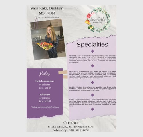 I am a dietitian specializing in infertility, through the postpartum period, as well as disordered eating, and eating disorder recovery.