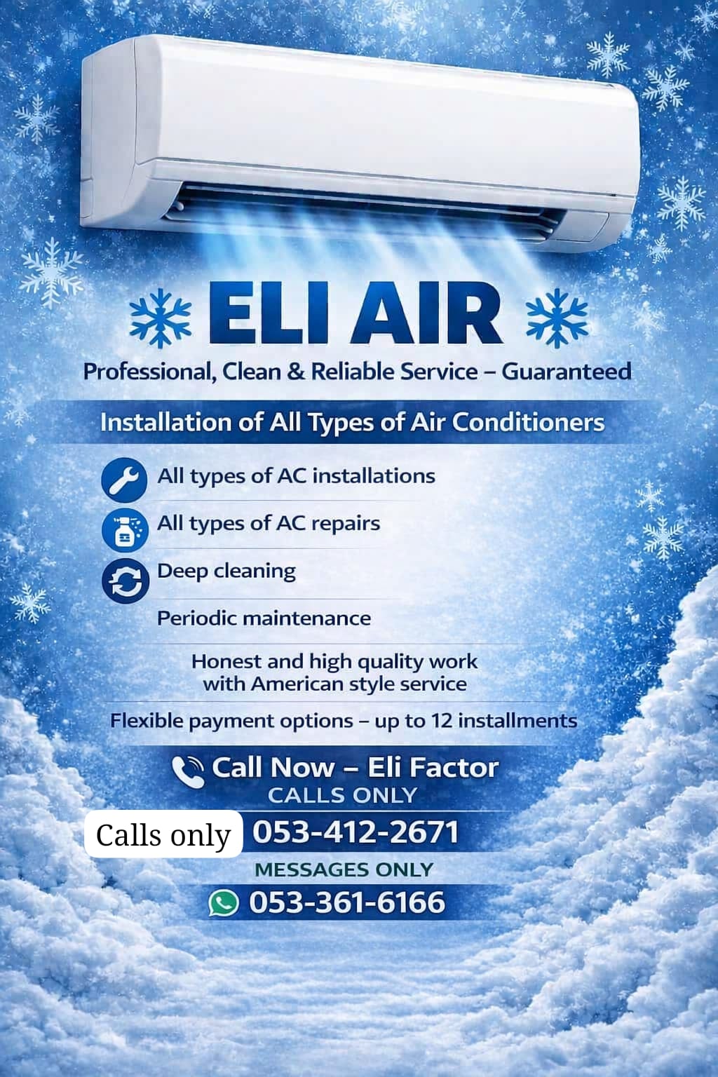 Installations of all types of AC's, deep cleaning, periodic maintenance, and AC repairs