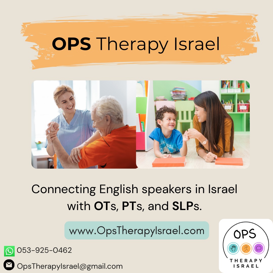 OPS Therapy Israel is a platform that connects English speakers with English-speaking speech therapists, physical therapists, and occupational therapists. We provide a free intake to help best connect you with a therapist based on your specific needs, location, and availability. You can book a call with us here!
