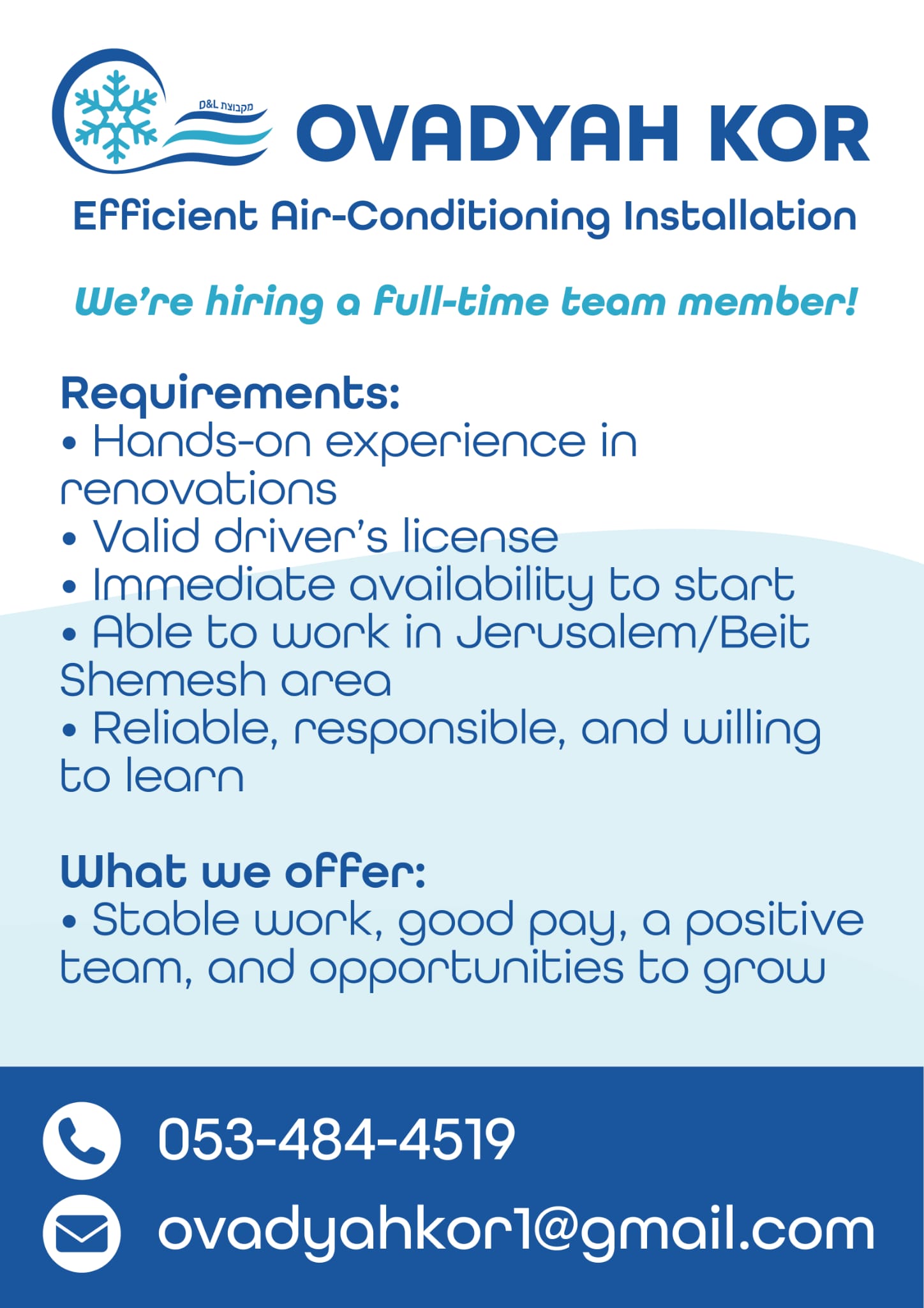 -Able to work in Jerusalem/Bet Shemesh area