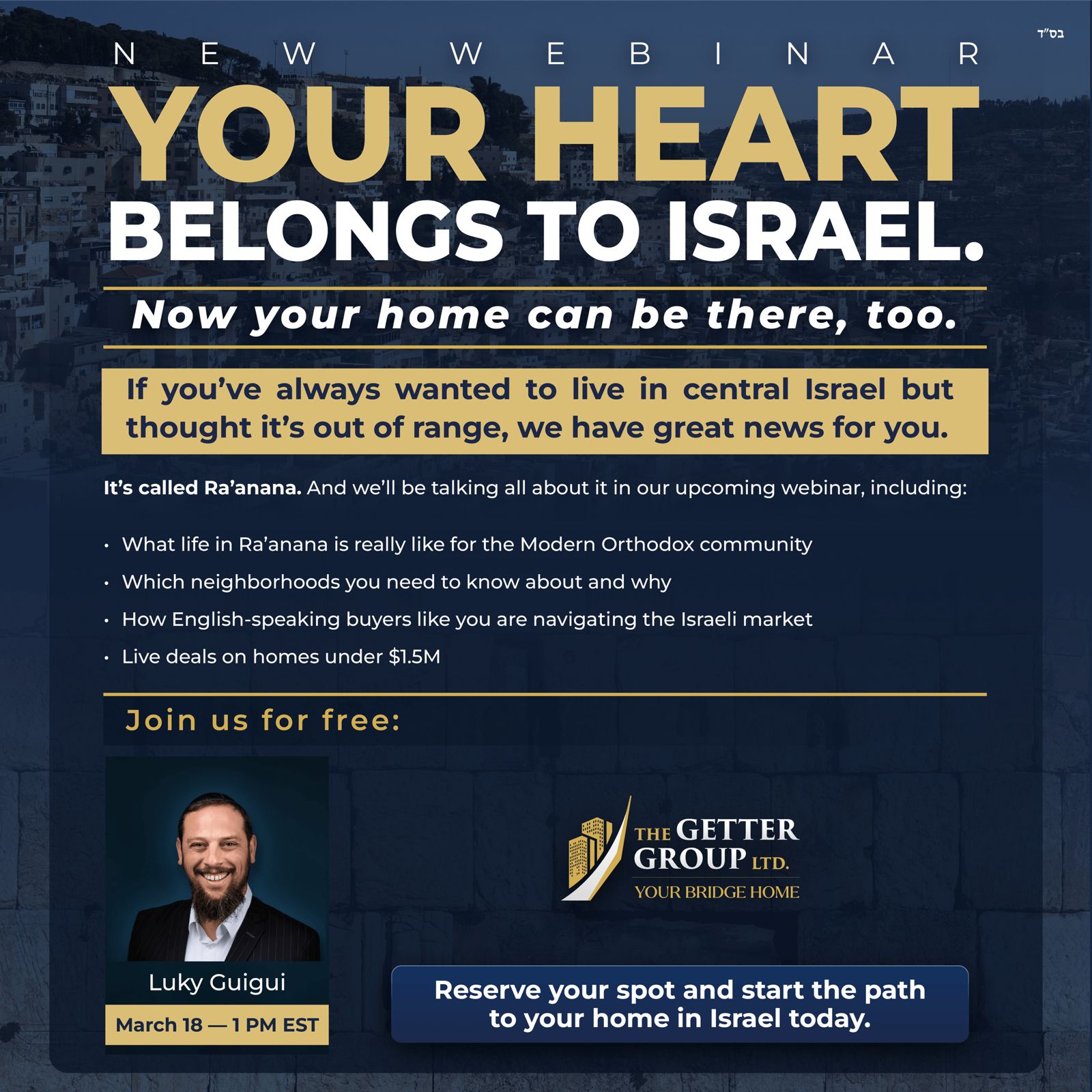 Your Heart Belongs in Israel. Now you can be here too.